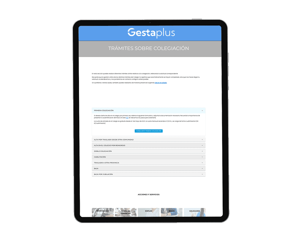 - Cualquier otra funcionalidad que necesites para tu colegio profesional o asociación.